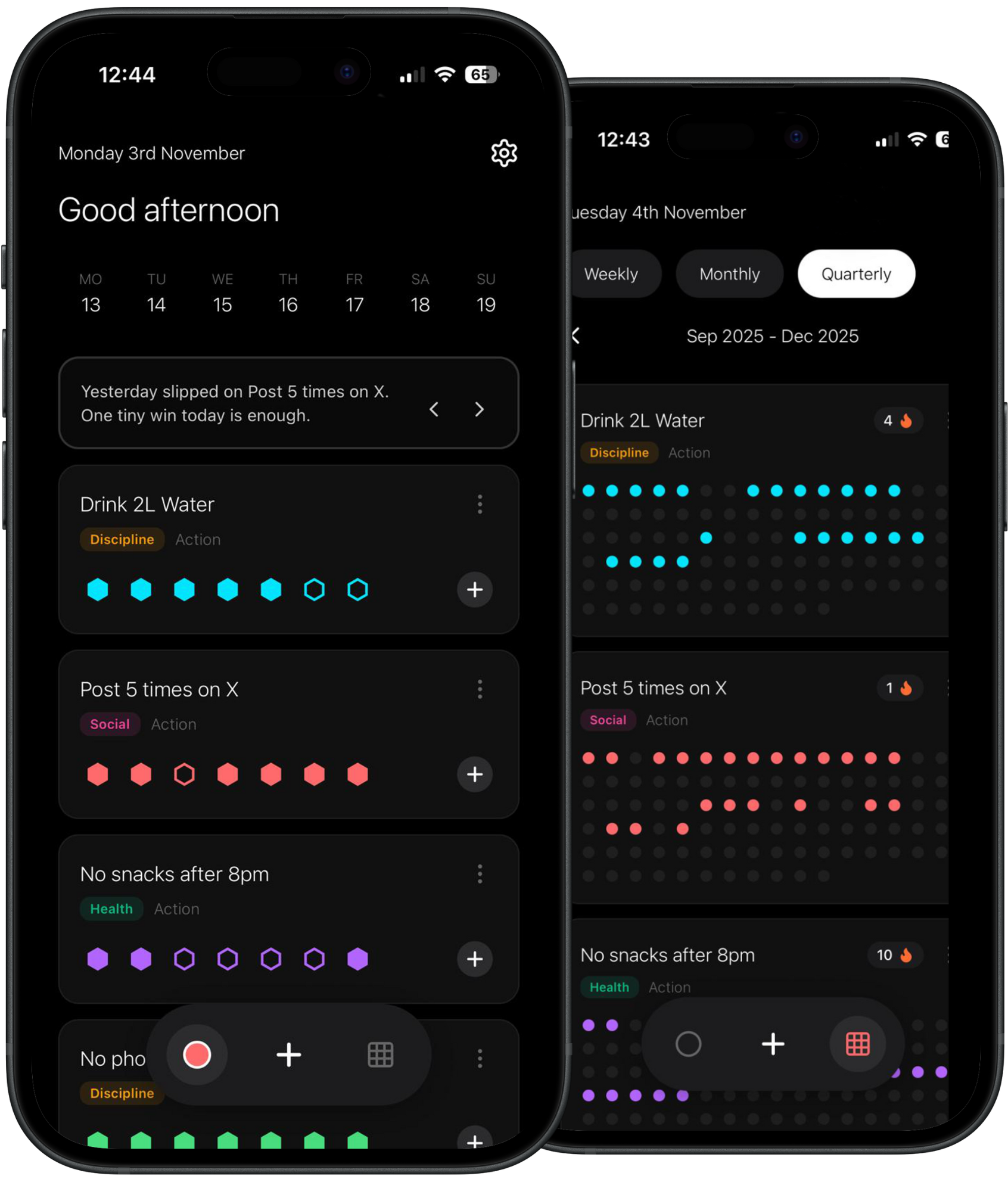 HEXIT makes habit tracking effortless, visual and genuinely motivating, so you actually stay consistent.
